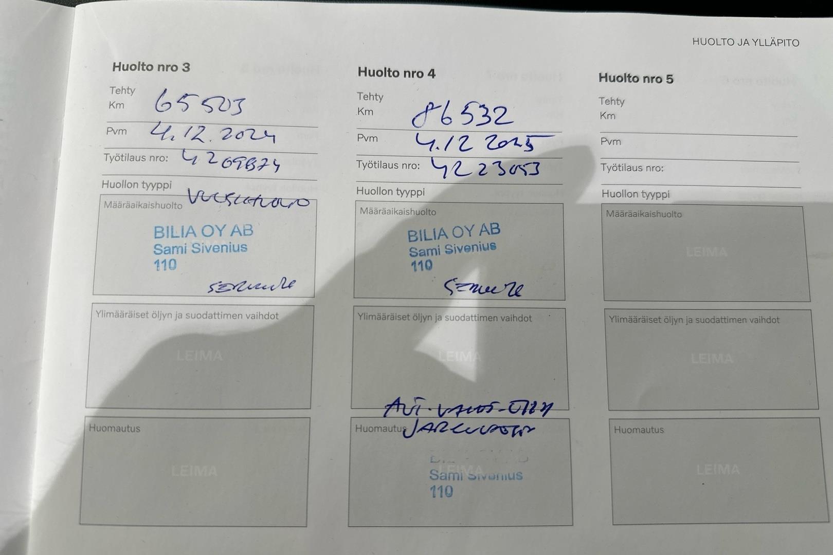 | Viimeisin huolto tehty 12/2025 |