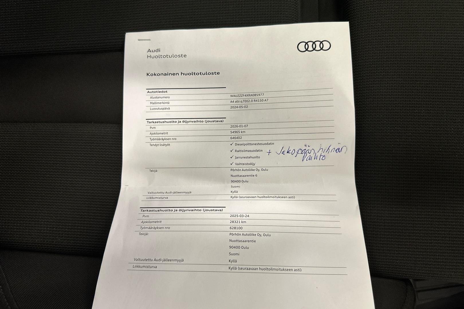 | Viimeisin huolto 07.01.2026 / 54965km |