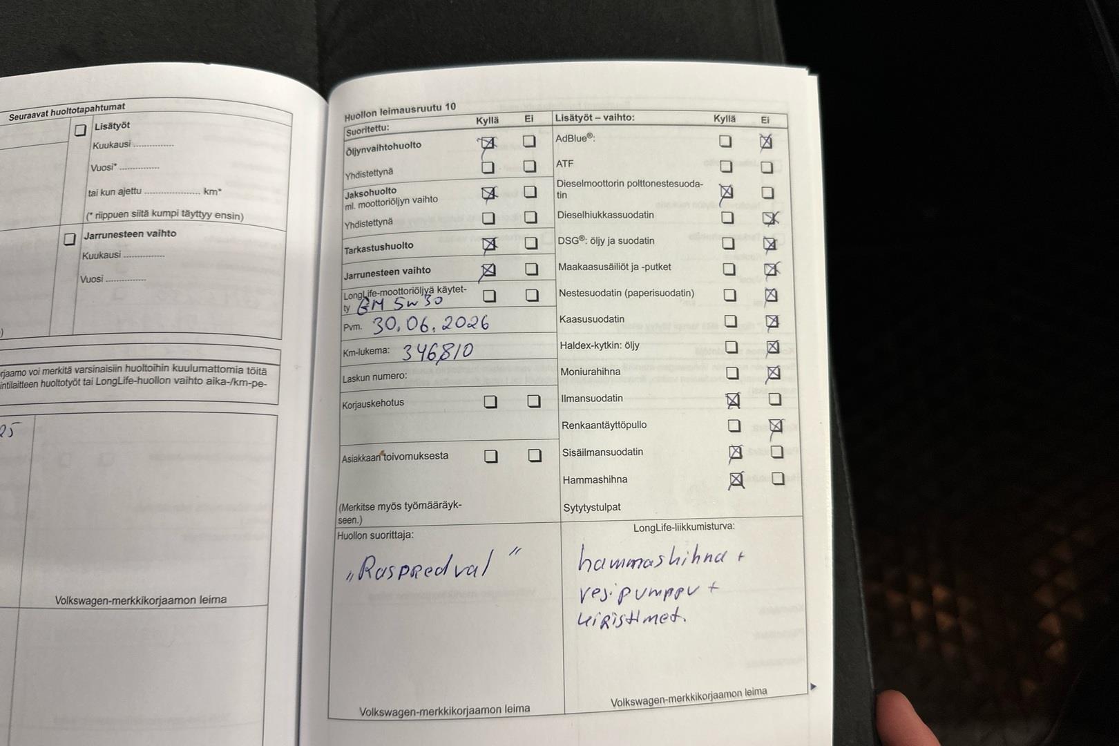 | Kilometrit | 368 000 KM |