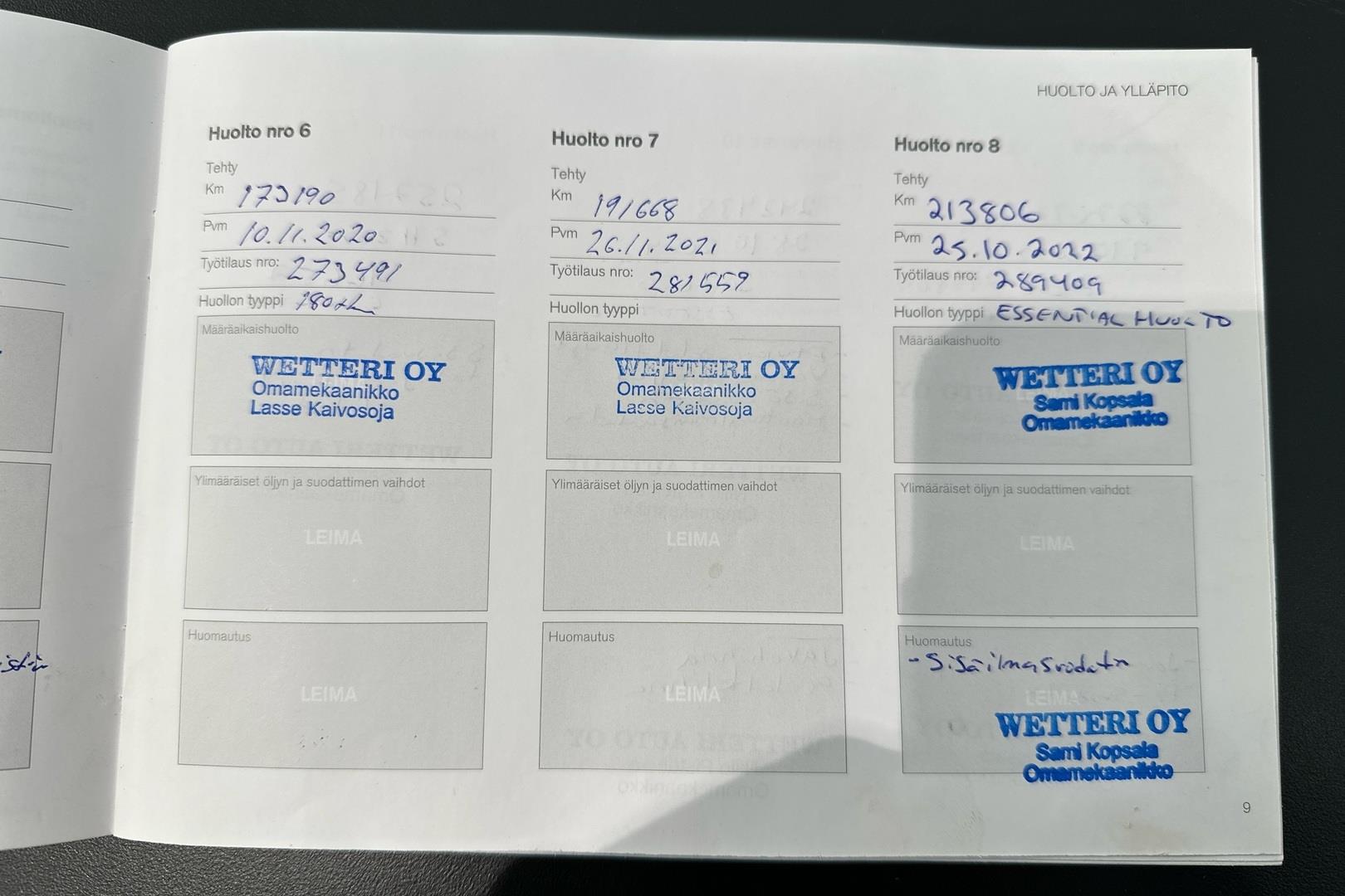 | Viimeisin huolto tehty 11/2025 |