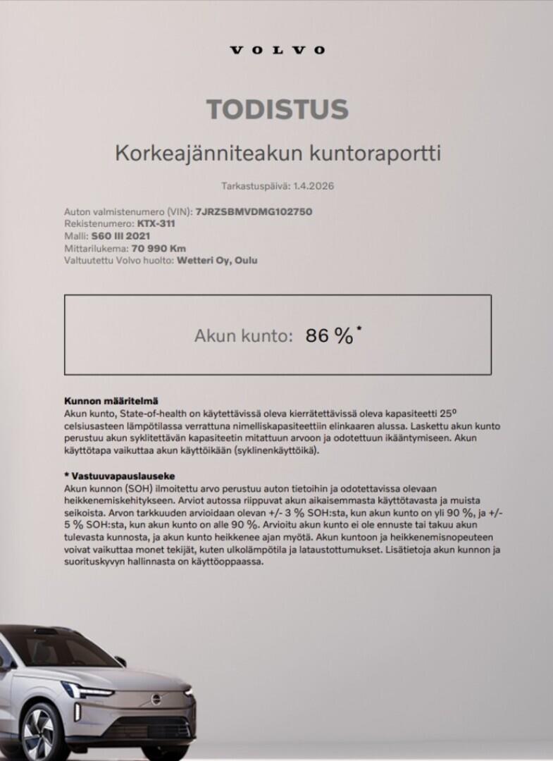 | Volvo Selekt -vaihtoauto takuu voimassa 12kk ja Selekt+ jatkovuosi 24kk on mahdollinen tähän autoon |